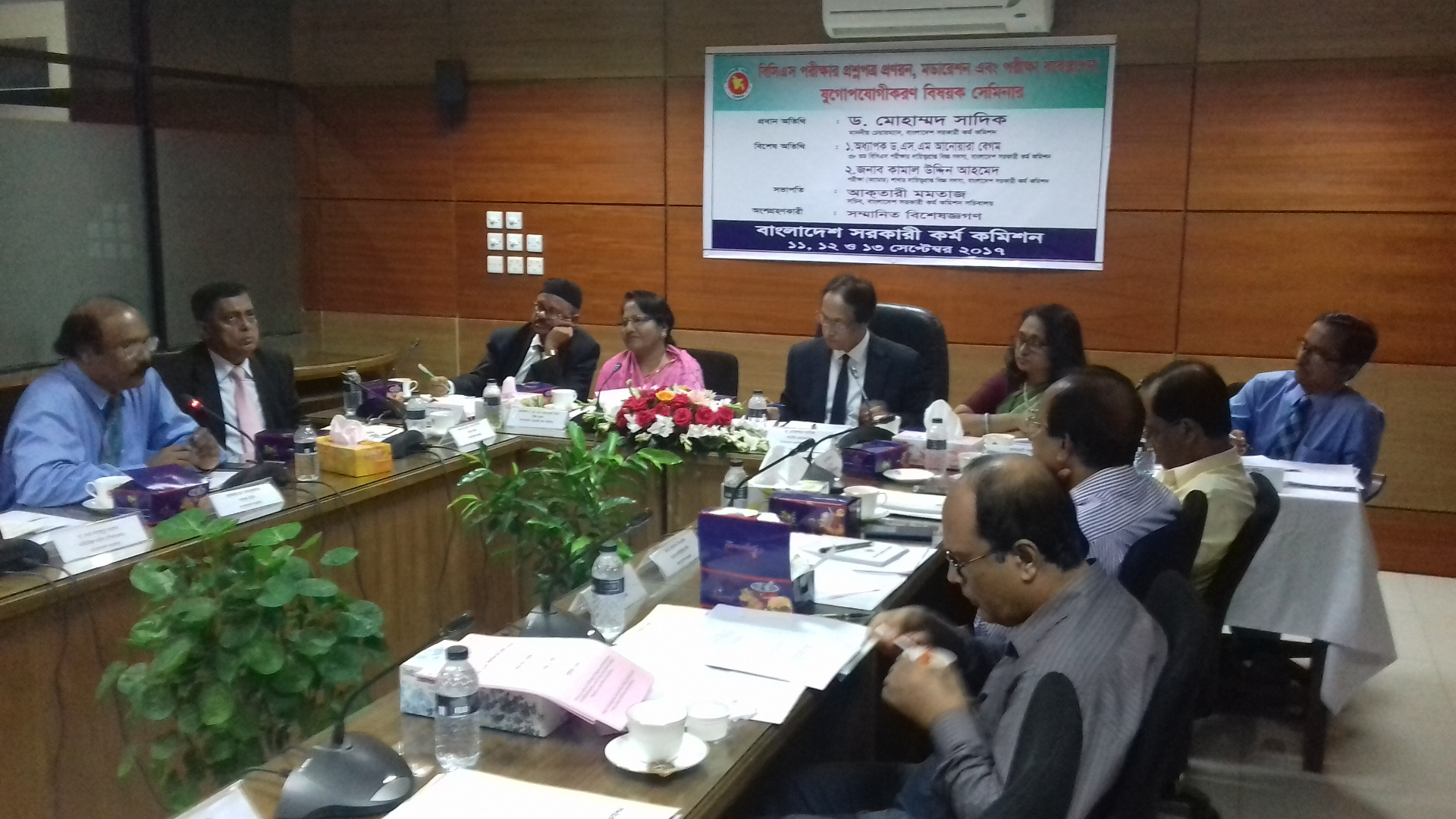 গত ১১,১২ ও ১৩ সেপ্টেম্বর ২০১৭ তারিখে বিসিএস পরীক্ষার প্রশ্নপত্র প্রণয়ন, মডারেশন ও পরীক্ষা ব্যবস্থাপনা যুগোপযোগীকরণ বিষয়ক তিন দিন ব্যাপী সেমিনার আয়োজন করা হয়। প্রধান অতিথি হিসেবে উপস্থিত ছিলেন সরকারী কর্ম কমিশনের মাননীয় চেয়ারম্যান ড. মোহাম্মদ সাদিক। উক্ত সেমিনারে সংশ্লিষ্ট বিজ্ঞ সদস্যবৃন্দ উপস্থিত ছিলেন। সেমিনারের সভাপতিত্ত্ব করে কমিশনের সচিবালয়ের সচিব বেগম আক্তারী মমতাজ।