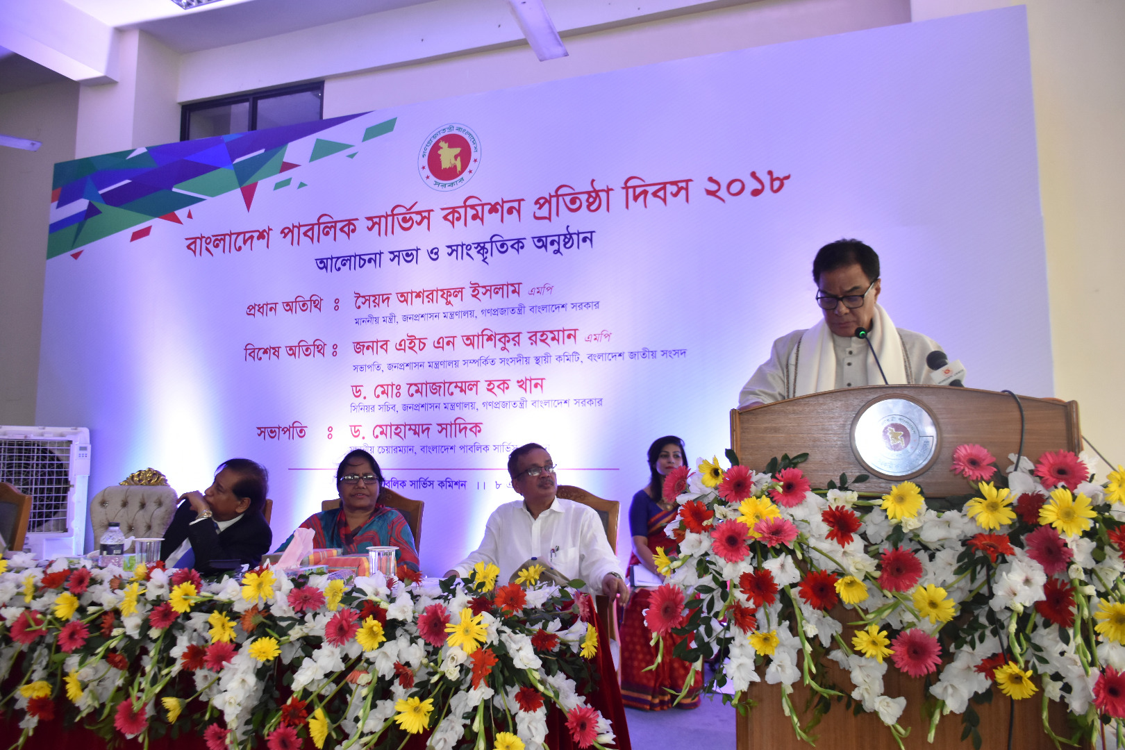 অনুষ্ঠানে প্রধান অতিথির বক্তব্যে জনপ্রশাসন মন্ত্রী সৈয়দ আশরাফুল ইসলাম বলেন, বাংলাদেশ পাবলিক সার্ভিস কমিশন প্রতিষ্ঠা দিবস পালনের মাধ্যমে জাতির জনক বঙ্গবন্ধু শেখ মুজিবুর রহমান প্রতিষ্ঠিত এ প্রতিষ্ঠানের ইতিহাস ও ঐতিহ্যের প্রতি শ্রদ্ধা প্রদর্শন হয়েছে। এ প্রতিষ্ঠানের ওপর অর্পিত দায়িত্ব যথাযথভাবে পালনে যে অঙ্গীকার ব্যক্ত করা হয়েছে তা আমাকে আনন্দিত ও গর্বিত করেছে। অনেক রক্ত, অশ্রু এবং সর্বোচ্চ ত্যাগের মাধ্যমে যে দেশ পেয়েছি সে দেশের মানুষের দারিদ্র দূর করে তার জীবনমান উন্নত করার যে মহতী উদ্যোগ তাকে এগিয়ে নিয়ে যাওয়ার জন্য এই প্রতিষ্ঠানটিকে নিবেদিত প্রাণ হয়ে কাজ করতে হবে। আমি আরও আনন্দিত যে বাংলাদেশ পাবলিক সার্ভিস কমিশন সর্বোচ্চ নিষ্ঠা, দক্ষতা ও নিরপেক্ষতার সঙ্গে এ দায়িত্ব পালন করছে।