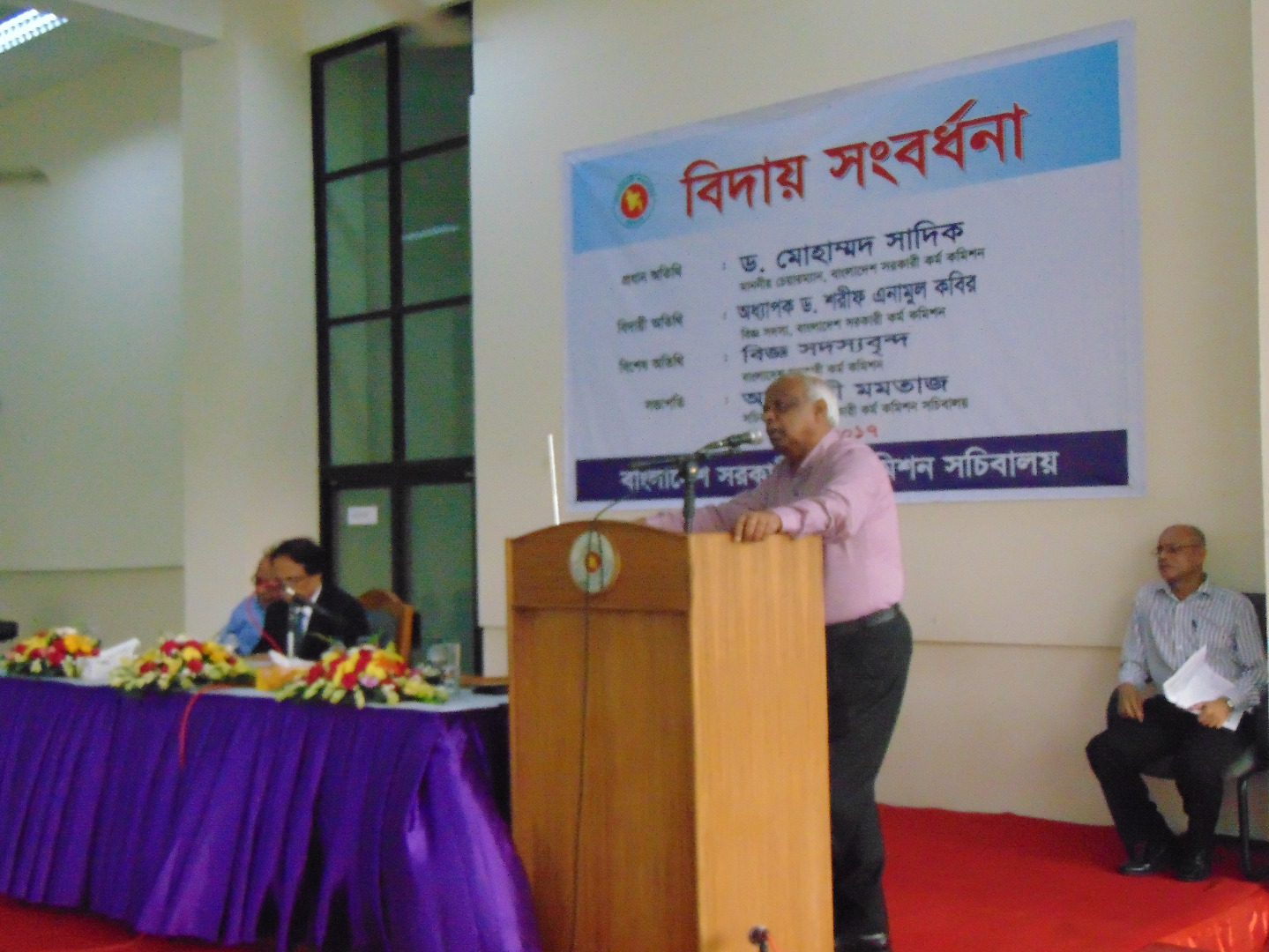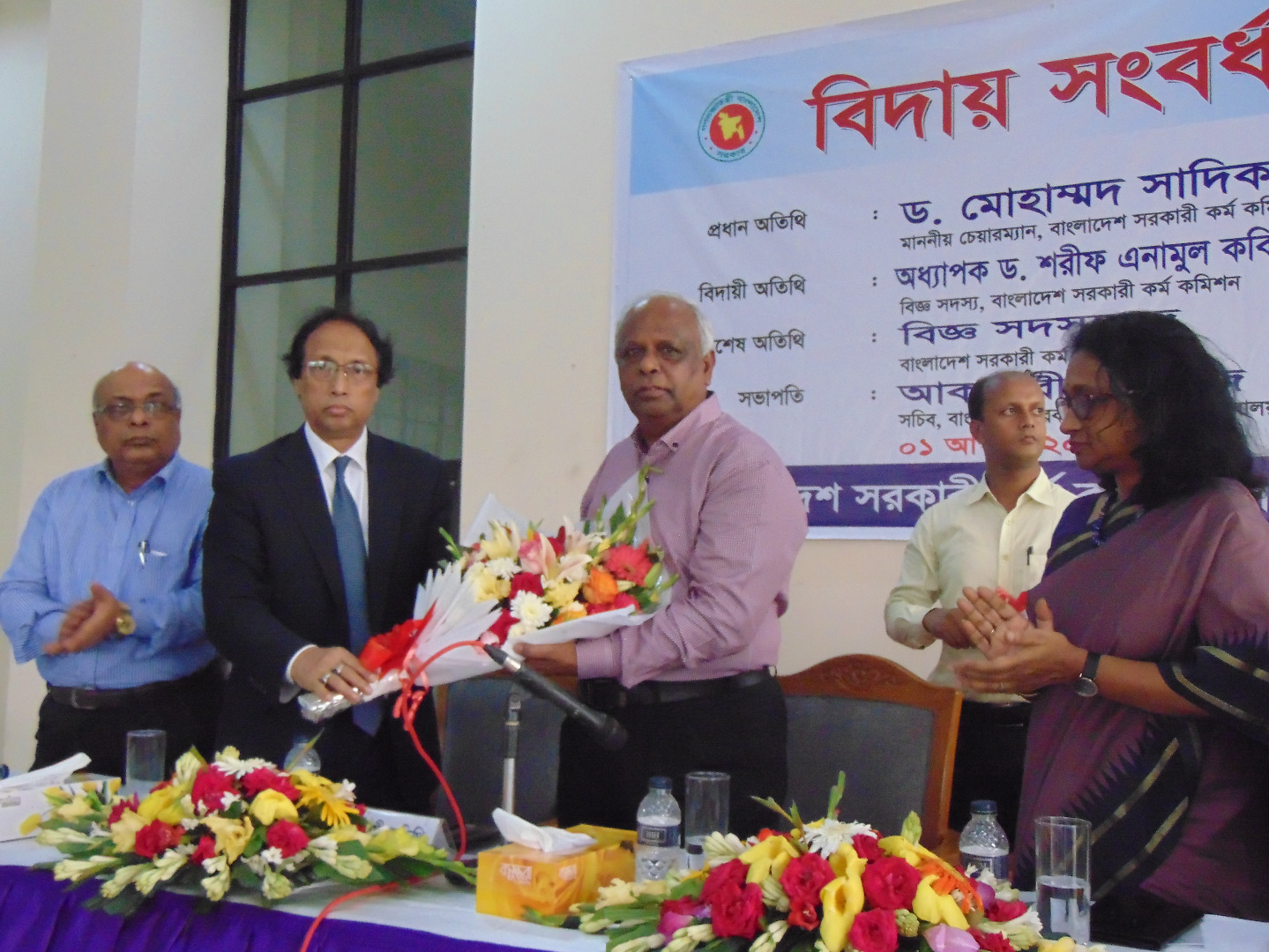 গত ০১ আগস্ট ২০১৭ বিকাল ০৩:৩০টায় বাংলাদেশ সরকারী কর্ম কমিশনের বিজ্ঞ সদস্য প্রফেসর ড. শরীফ এনামুল কবির এর বিদায় সংবর্ধনা অনুষ্ঠিত হয়। উক্ত অনুষ্ঠানে সভাপতিত্ব করেন বাংলাদেশ সরকারী কর্ম কমিশন সচিবালয়ের সচিব বেগম আক্তারী মমতাজ। প্রধান অতিথি হিসেবে উপস্থিত ছিলেন কমিশনের মাননীয় চেয়ারম্যান ড. মোহাম্মদ সাদিক।