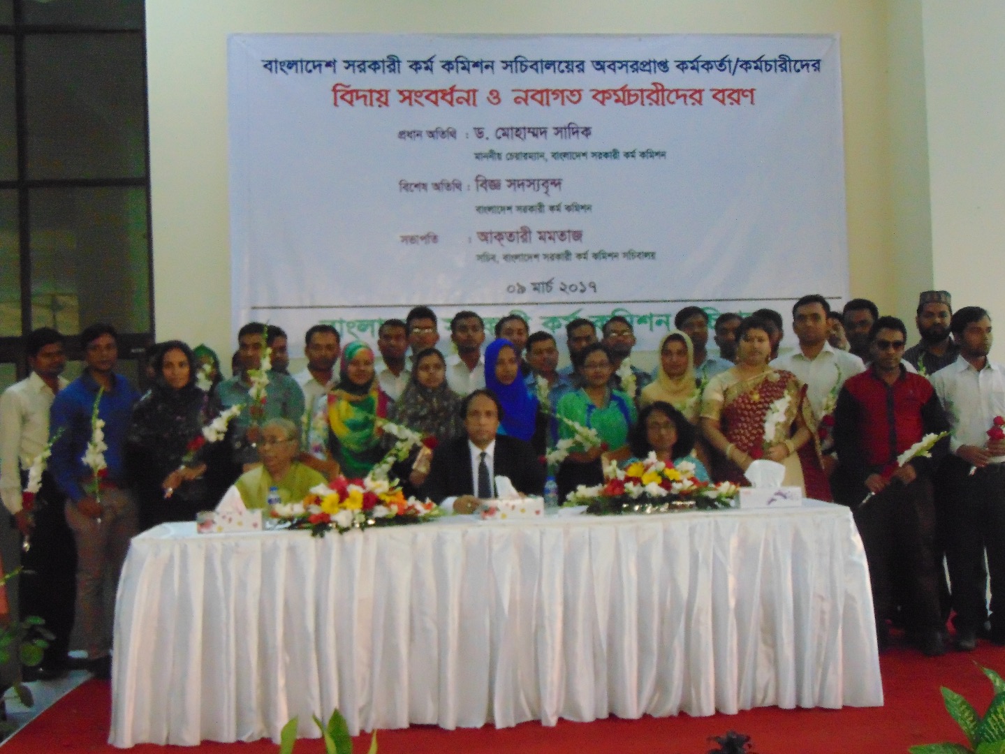 গত ০৯ মার্চ বিকাল ৩:০০টায় বাংলাদেশ সরকারী কর্ম কমিশন সচিবালয়ের অবসরপ্রাপ্ত কর্মকর্তা/ কর্মচারীদের বিদায় সংবর্ধনা ও নবাগত কর্মচারীদের বরণ অনুষ্ঠান আয়োজন করা হয়। অনুষ্ঠানে সভাপতিত্ব করেন কমিশন সচিবালয়ের সচিব বেগম আকতারী মমতাজ। প্রধান অতিথি হিসেবে উপস্থিত ছিলেন কমিশনের মাননীয় চেয়ারম্যান ড. মোহাম্মদ সাদিক।